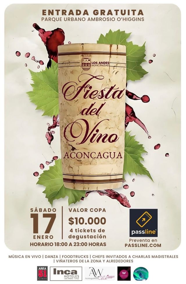 Con el lanzamiento oficial de la Fiesta del Vino Aconcagua 2026, evento que se ha consolidado como uno de los hitos turísticos más importantes del verano en la provincia, la municipalidad de Los Andes ya tiene todo listo para esta actividad programada para este sábado 17 de enero, a partir de las 18:00 horas, en el Parque Urbano Ambrosio O'Higgins.